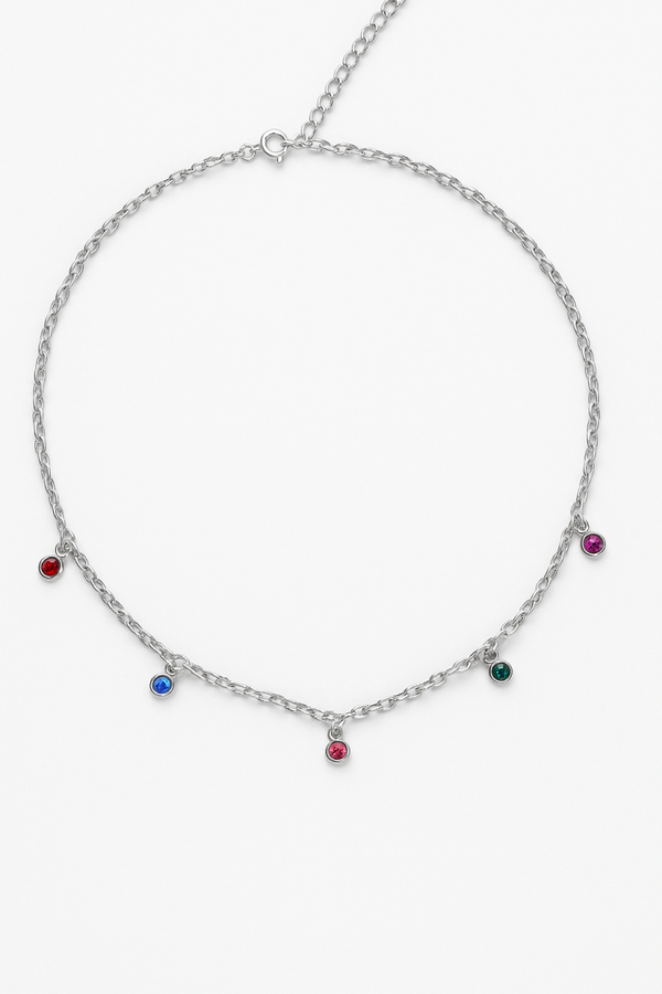 Voeg kleur en elegantie toe aan je look met deze verfijnde Premium Stainless Steel ketting, versierd met subtiele gekleurde kristallen (ca. 5 mm). De combinatie van de glanzende schakels (3 mm dik) en de speelse steentjes creëert een perfecte balans tussen modern en klassiek – ideaal voor elke gelegenheid.