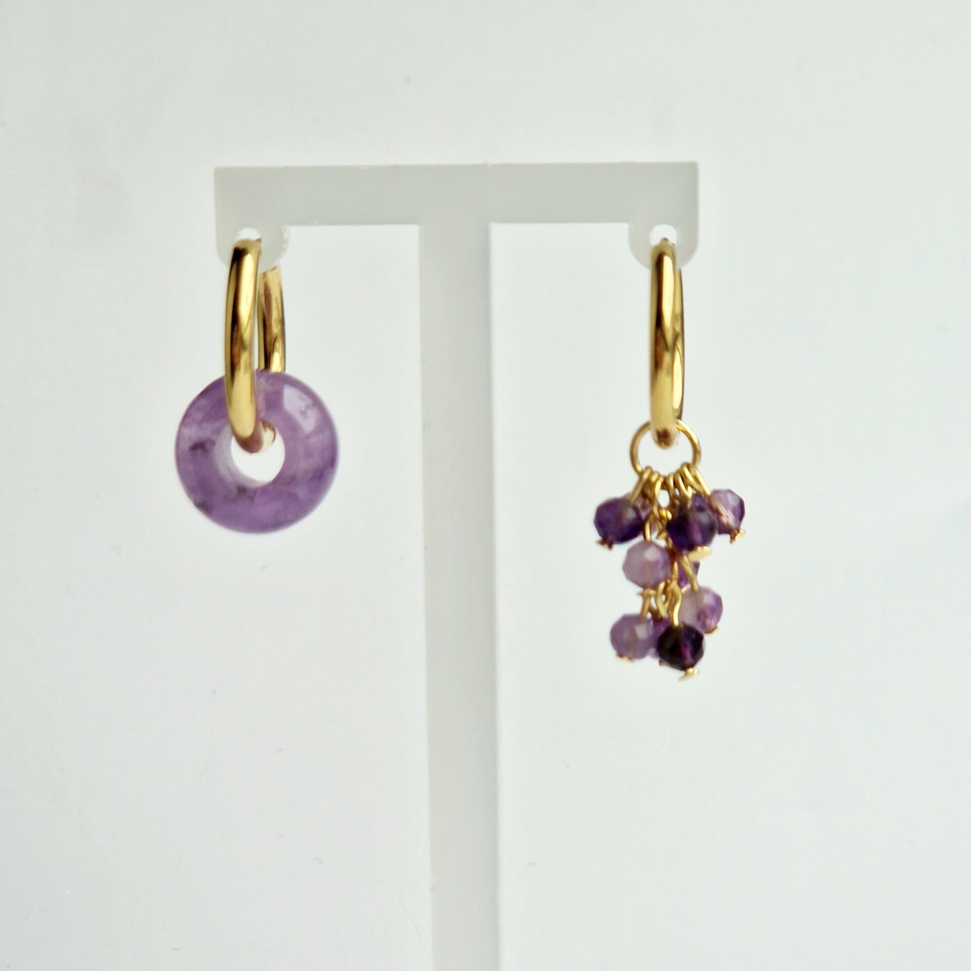 Amethist staat bekend om zijn kalmerende en beschermende eigenschappen. Het helpt bij het verlichten van stress en angst, bevordert spirituele groei en intuïtie, en kan helpen bij meditatie en het verbeteren van spirituele helderheid. Veel mensen dragen amethist als een talisman om negatieve energie af te weren en innerlijke rust te bevorderen.