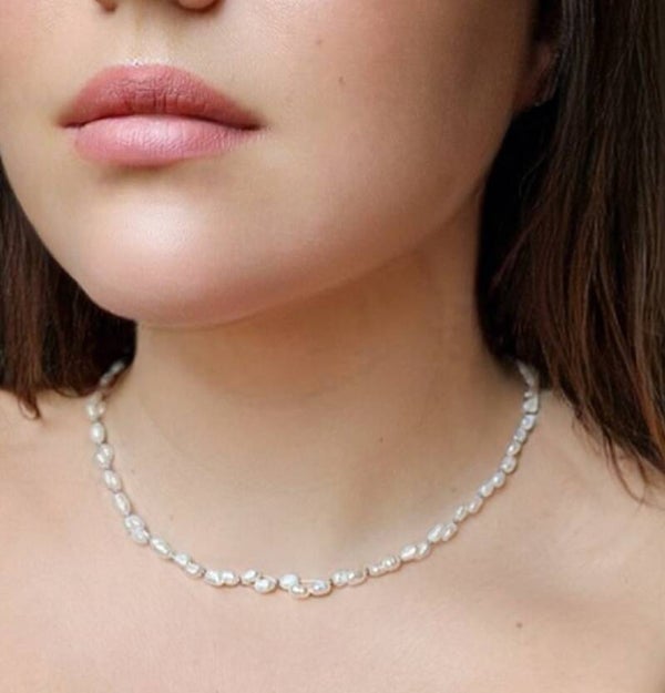 Elke parel is uniek in vorm en glans, wat deze ketting haar authentieke charme geeft. Handgemaakt in ons atelier in Amsterdam met oog voor detail en kwaliteit.