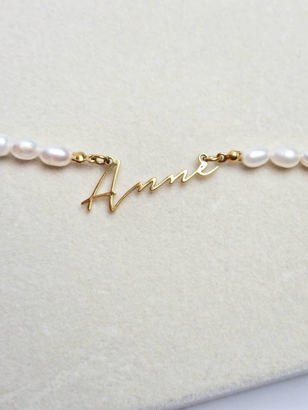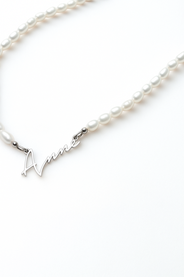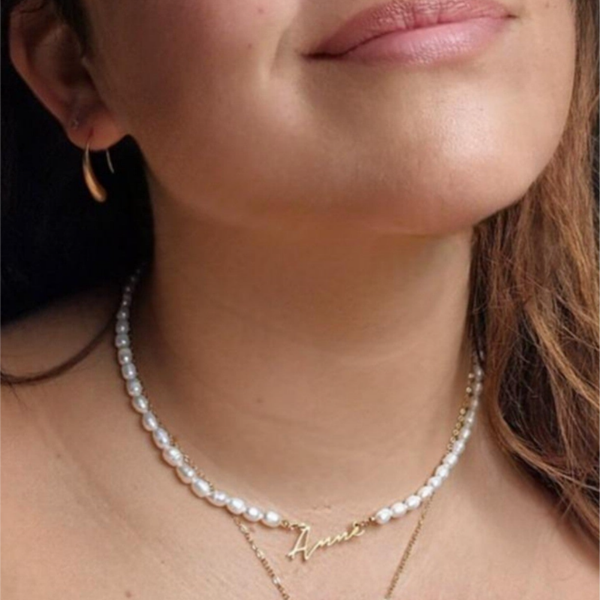 De zoetwaterparels (4–6 mm) hebben een natuurlijke, organische vorm waardoor elke ketting uniek is. Dankzij het duurzame stainless steel blijft de naamhanger kleurvast, hypoallergeen en waterproof, perfect voor dagelijks gebruik.