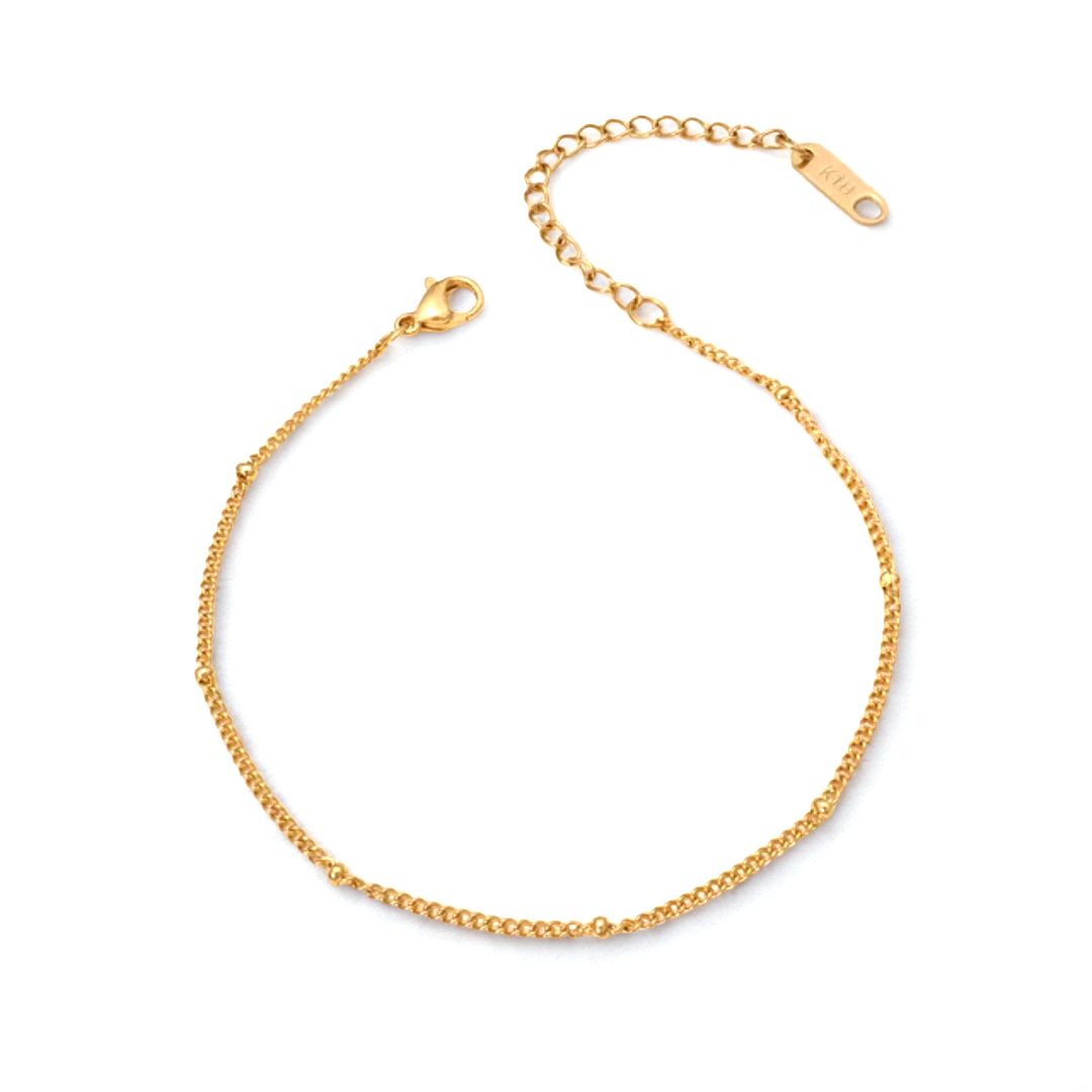 Voeg subtiele elegantie toe aan je look met deze verfijnde armband van Premium Stainless Steel. De fijne schakel wordt afgewisseld met kleine ronde accenten, wat zorgt voor een stijlvolle en moderne uitstraling — perfect voor dagelijks dragen én speciale gelegenheden.