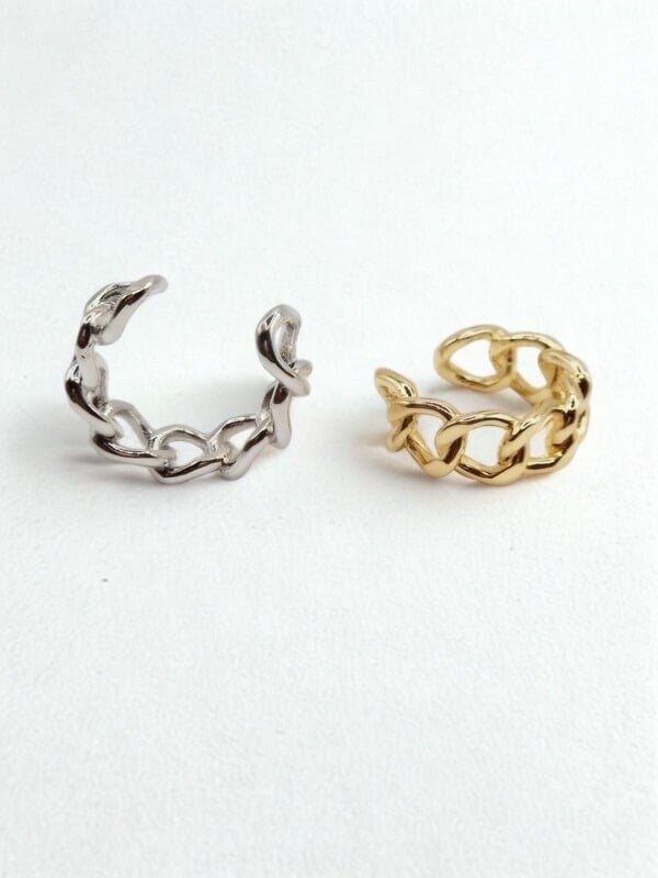 Deze stijlvolle stainless steel chain ring combineert kracht met elegantie. Met zijn verfijnde schakeldesign en verstelbare maat past de ring perfect om elke vinger. Verkrijgbaar in zowel 18k goud verguld als zilverkleurig stainless steel.